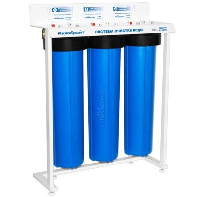 20ББ Трехступенчатая система магистр. фильтров (с картридж.) для очитски ЖЕСТКОЙ ВОДЫ АКВАБРАЙТ