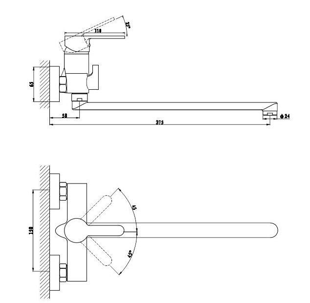 Смеситель д/ванны L-нос (встр. див.) Moderna 7213278C-35L(F) GROSS AQUA (8)